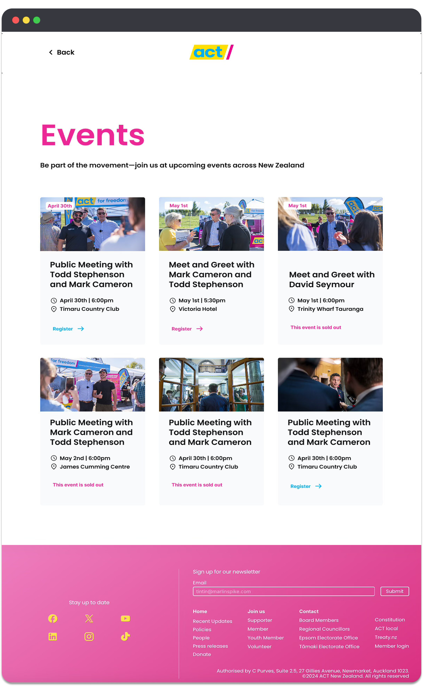 The redesigned website provides ACT New Zealand with a strong digital foundation that clearly communicates its values, priorities, and people. The new design supports improved user engagement by making key information easy to find and understand, and it strengthens ACT’s ability to connect with supporters, inform voters, and encourage participation.
